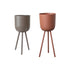 10" Round x 26-3/4"H & 9" Round x 20-3/4"H Metal Planters w/ Legs, Matte Terra-cotta Color & Taupe, Set of 2, KD (Holds 9" & 8" Pots)