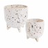 The unique feet of the Reid Pot bring a modern addition to the piece, which is finished with a white reactive glaze with modern painting marks made by hand. 6.75" x 6.5"
